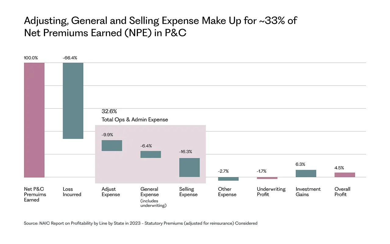 30%+ of P&C insurance premium goes into ops & admin spend
